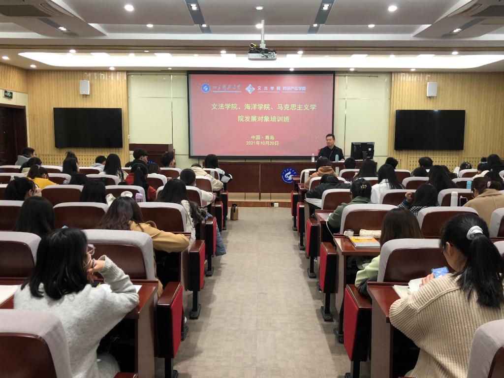 在喜迎中国共产党成立100周年之际,为教育引导党员发展对象学习党的历史、加强党性修养,10月20日,fun88官网体育第五期党员发展对象培训班在J9-135报告厅开讲,校宣传部副部长秦晓钟应邀为fun88官网体育、海洋公司、马克思主义公司党员发展对象做“回顾百年党建”专题讲座。