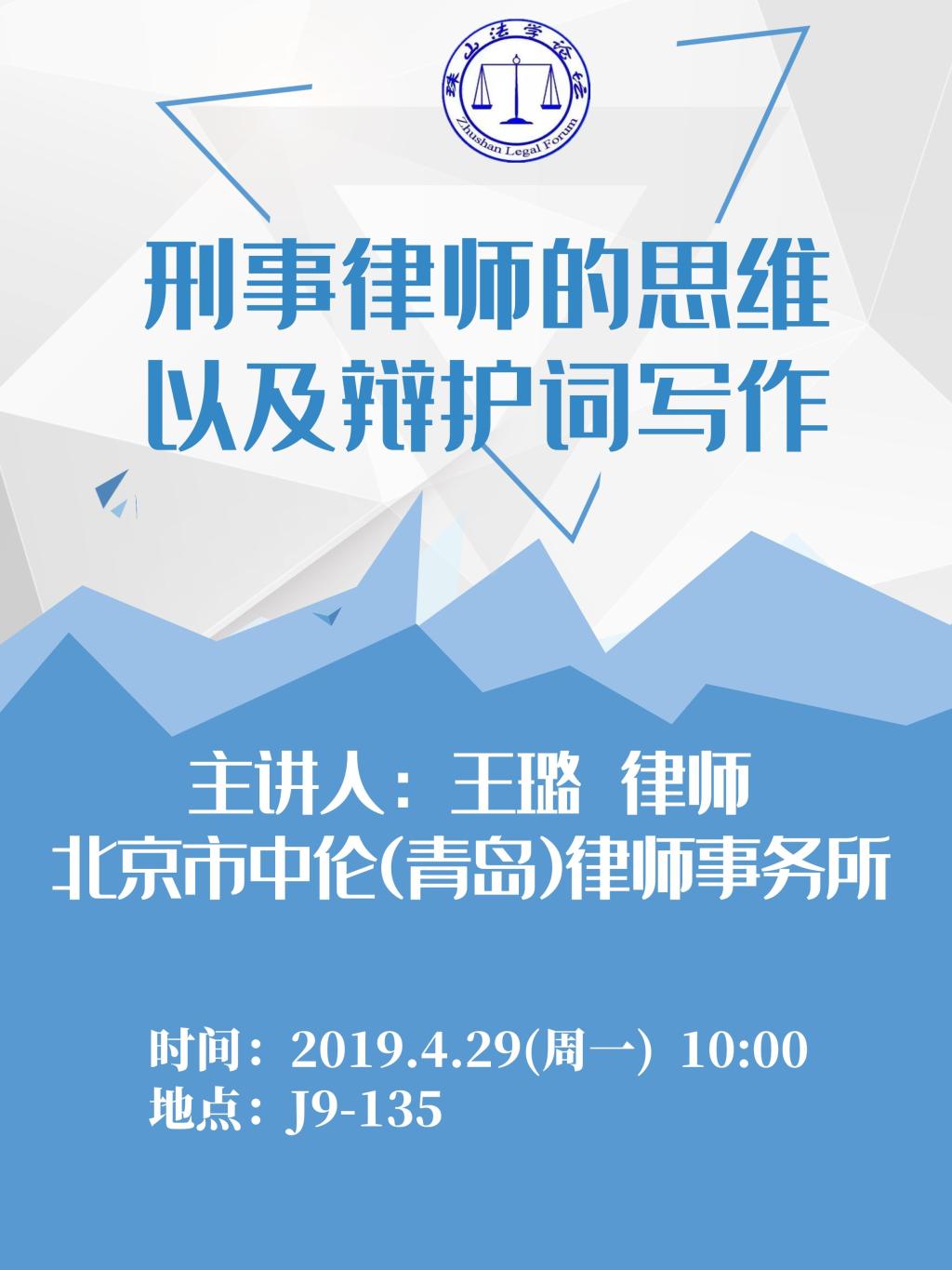 【讲座通知】刑事律师的思维以及辩护词写作