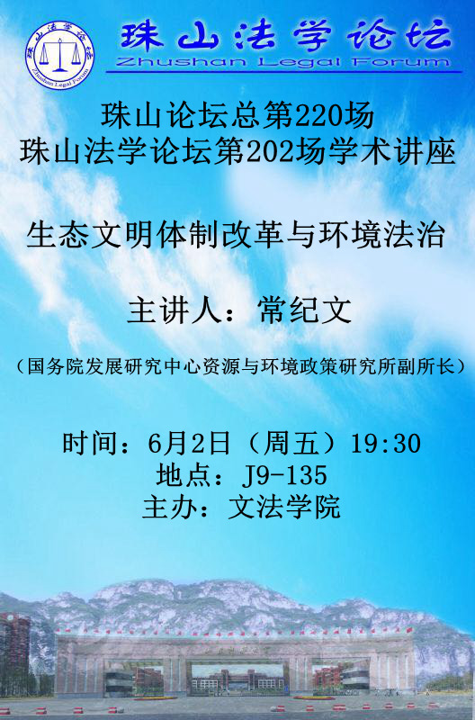 讲座题目:生态文明体制改革与环境法治