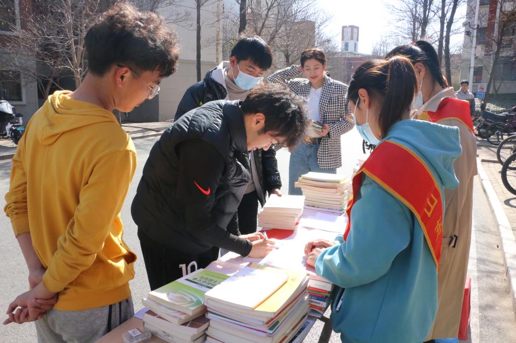 活动开始前,负责人首先向大家说明了此次活动的目的、流程及注意事项,并将志愿者们分成两组,分别在A14-16和C12号宿舍楼下进行旧书回收。活动现场前来捐书的同学们络绎不绝,大家积极捐赠自己的闲置书籍,为志愿活动贡献自己的力量。经过志愿者的努力和大家的爱心捐献,此次活动共回收旧书400余本。志愿者们将收集来的书籍进行分类、清点、登记,将悉数捐赠给辛安街道办事处爱心书屋及致远中学,实现旧书的良性循环。