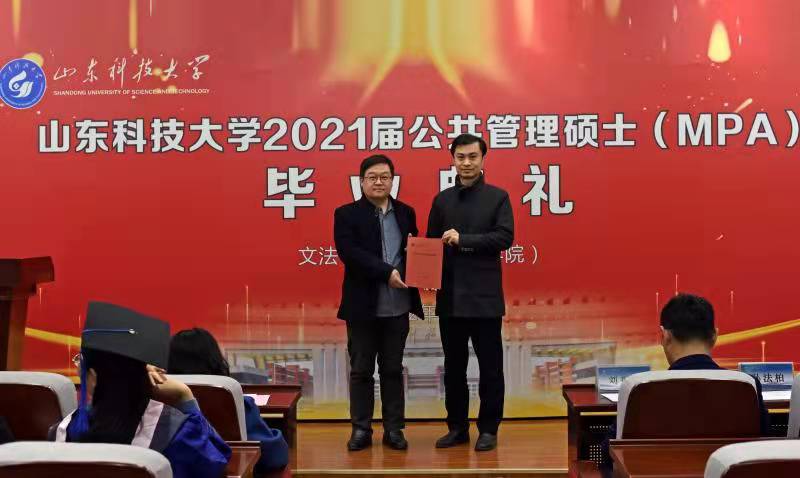 在毕业证书颁发环节,fun88官网体育经理孙法柏教授向2021届MPA毕业生颁发毕业证书并合影留念,对他们顺利毕业致以祝贺与勉励,愿他们谨记校训,砥砺前行。副经理秘明杰向fun88官网体育员工会秘书长李冬移交2021届毕业生名册。与会领导、师生合影留念,2021届公共管理硕士(MPA)毕业典礼在充满祝福和感动的氛围中落下帷幕。(通讯员:王璐)
