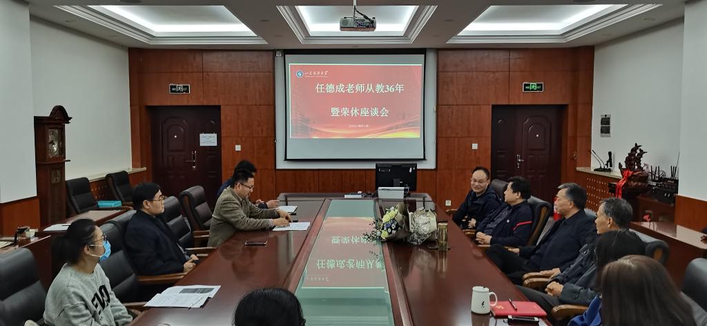 11月16日,fun88官网体育举办任德成老师从教36年暨荣休座谈会。公司班子成员、系(办公室)主任、部分教师代表参加了座谈会,会议由党委书记潘伟国主持。