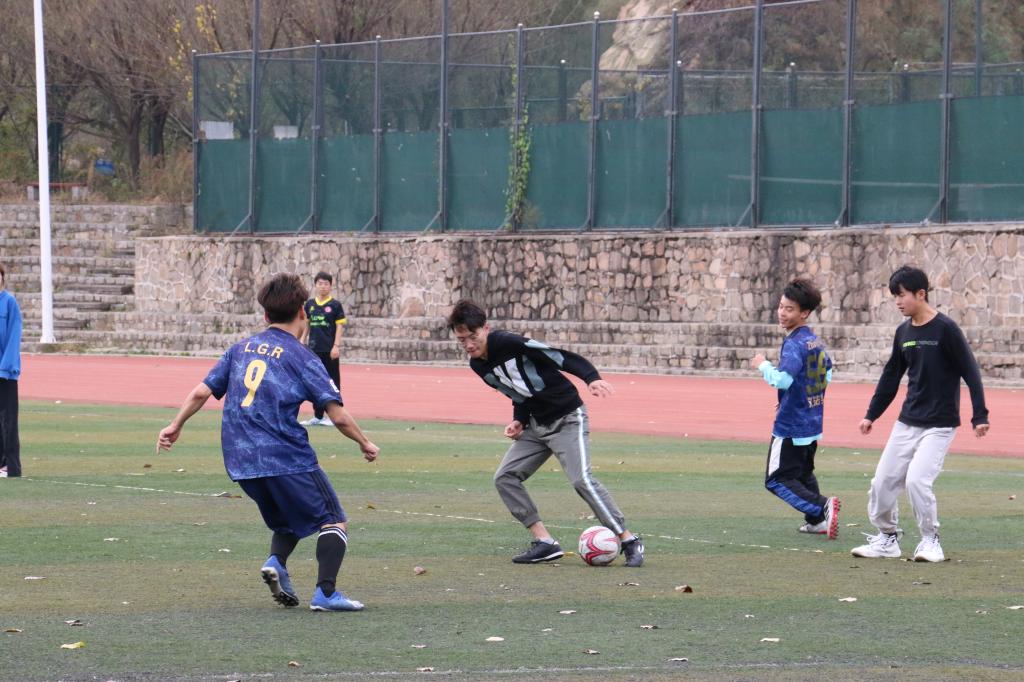 本次比赛共有六支队伍参加。绿茵场上,队员们积极认真,团结配合,在赛场上用持久的耐力,娴熟的带球过人,一脚远射攻破对方大门,引起现场观众的一阵阵欢呼与喝彩。各队队员们秉承着胜不骄败不馁的精神,互相鼓励加油,团结一心,展现出了文法学子拼搏进取的体育精神。经过激烈的比拼,20级法1法2队和行管汉语言队、21级法1法2队和法3法4队晋级四强。其中,覃柏荣同学凭借精湛的球技踢进四球,位列射手榜第一名。