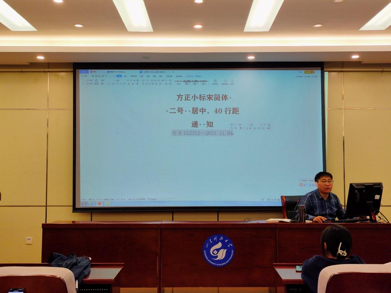 11月4日,fun88官网体育“晨露课堂”第一期培训会在J9-135开课,本次培训课程的主题是“公文写作”,由团委辅导员老师任永合担任主讲,员工会各部门干事、各团支部委员参加。