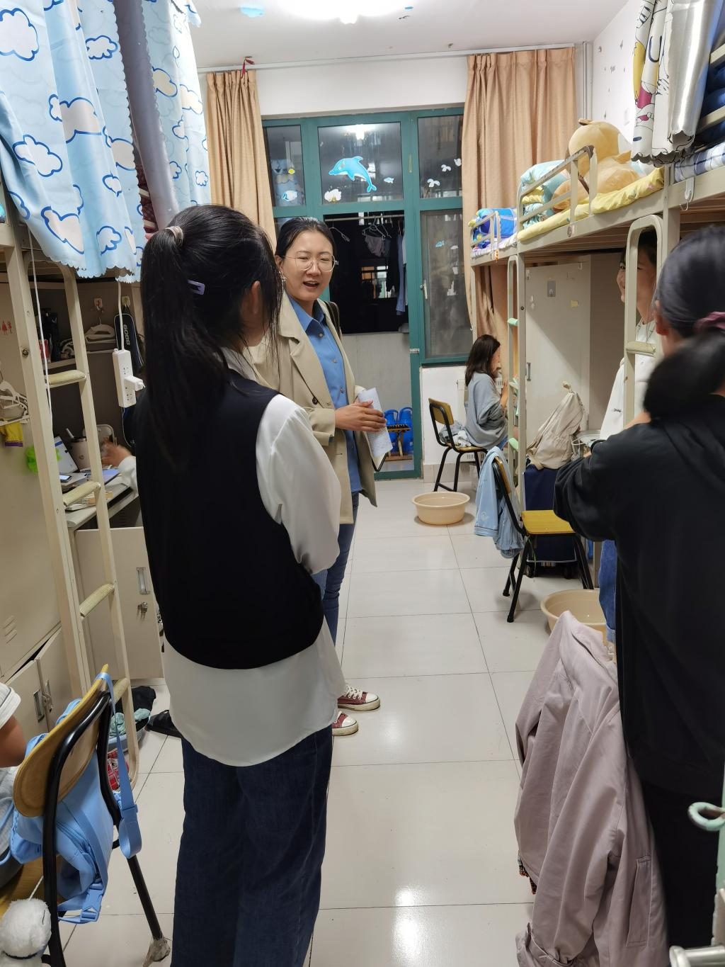 为进一步加强公司员工宿舍管理,构建安全卫生宿舍,了解同学们的生活状况,10月10日,fun88官网体育学工办主任、研究生辅导员郭婷婷、21级辅导员王晓迪带领员工干部走进员工宿舍,开展宿舍安全卫生大检查。
