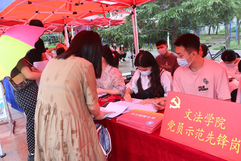 公司始终坚持“工作认真,态度热情,服务体贴,气氛热烈”的迎新工作标准,组织全体工作人员提前熟悉工作流程,要求各位志愿者坚守本职岗位、认真周到服务,秉持“就近报到、就近住宿”原则,合理设置迎新场地,悉心准备一次性雨衣,保证志愿者“一对一”引导,实现 “一站式”服务。迎新过程中,师生党员切实发挥先锋模范作用,从早到晚、坚守岗位,把“我为群众办实事”党史学习教育成果落实到实际工作中。值得一提的是,为使新生了解公司概况和专业人才培养成效,公司特别准备了 “请党放心,强国有我”文法青英榜,鼓励引导新生向优秀看齐。