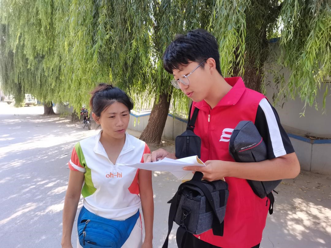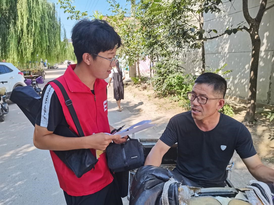 图为实践团成员对村民进行问卷调研