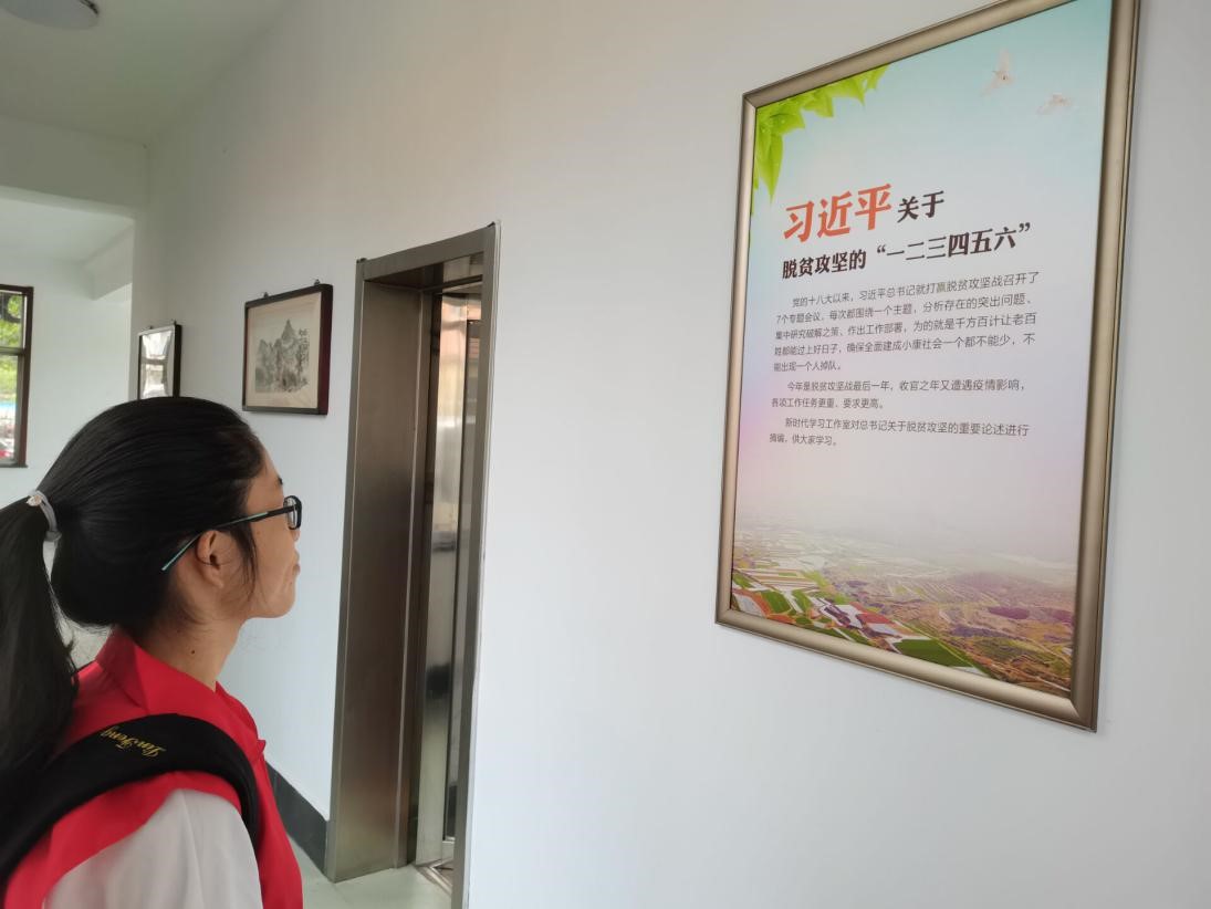 图为小组成员参观政府内部乡村振兴文化墙