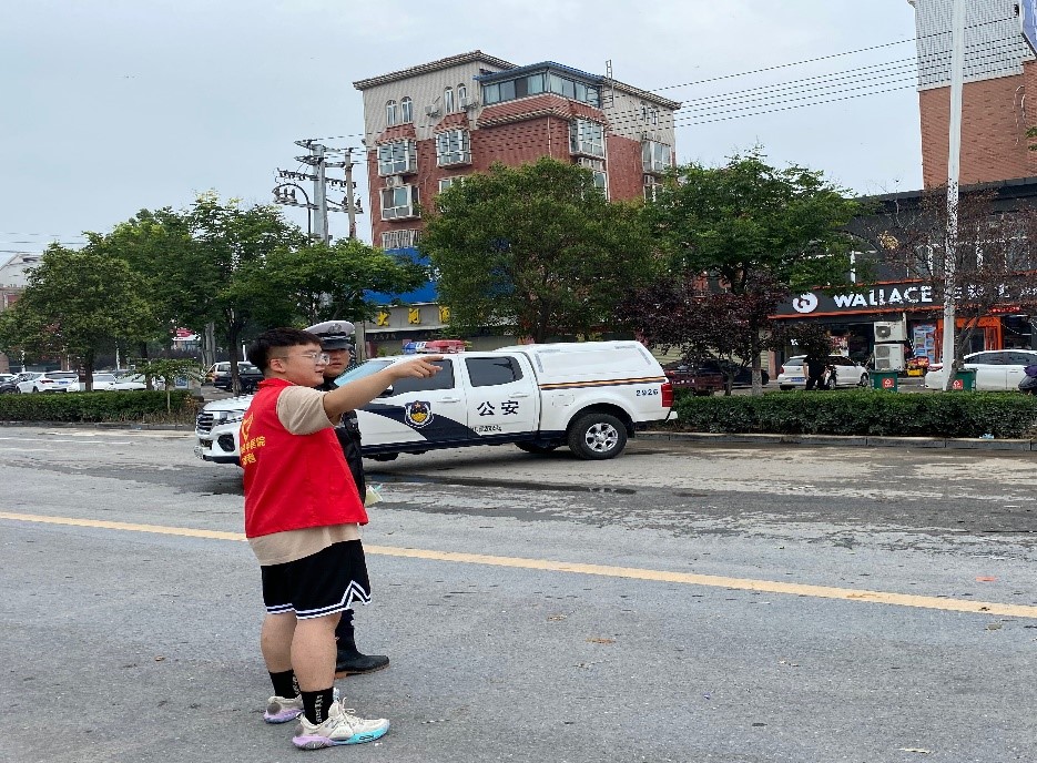 队员们协助交通干警维持交通