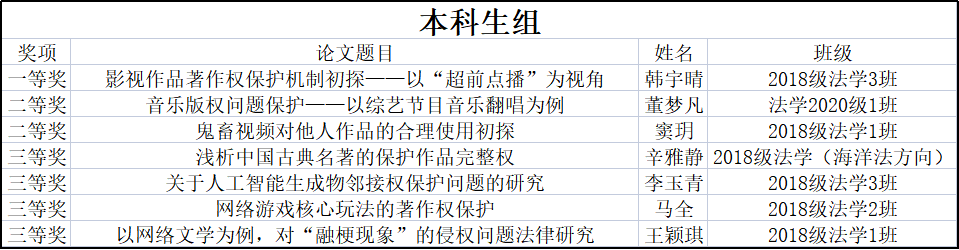 至此,历时两个月的版权征文大赛圆满落幕,通过此次大赛,进一步激发了同学们的写作能力,开拓了论文写作的思维和视野,使同学们在深入研究版权的相关知识的同时,更为今后的论文写作指明了方向。
