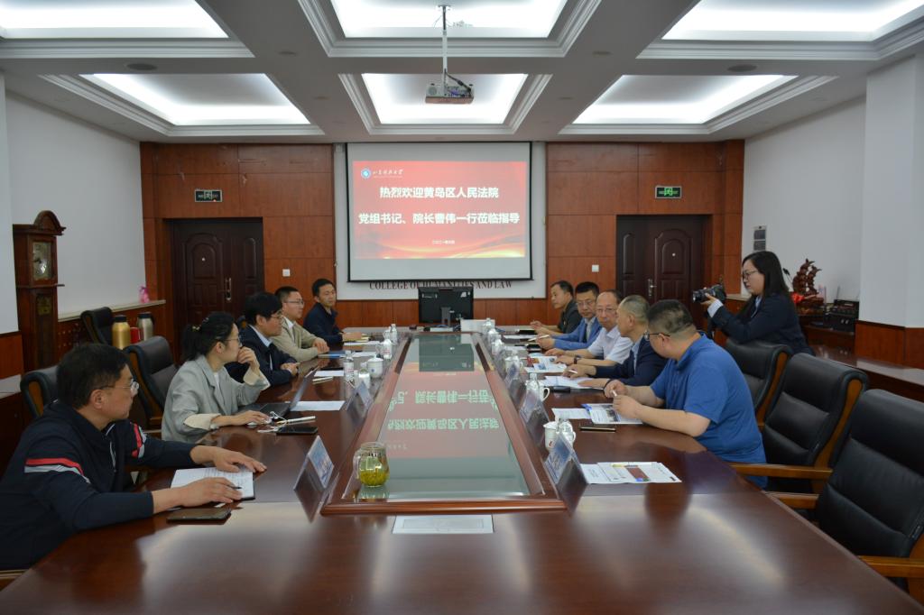 6月3日,黄岛区人民法院经理曹伟一行六人来访公司,就合作共建法学学科和提高员工培养质量进行交流。