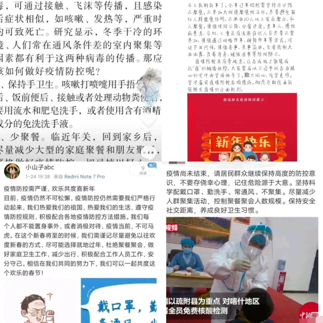 寒假期间,面对疫情防控常态化形势,文法学子利用丰富的网络资源,采用了线上+线下结合,以线上调查为主,线下调查为补充的方式,对家乡疫情防控情况进行调研,开展了了一次意义非凡的社会实践。在院团委老师的指导下,本次调研活动尽量减少线下调查,并要求线下调查时严格遵守疫情防控的相关规定,佩戴口罩,避免聚集。小分队通过广泛阅览和收集疫情防控相关新闻和内容,针对性的进行实地走访,对疫情现状和防控情况进行了全面系统的分析。