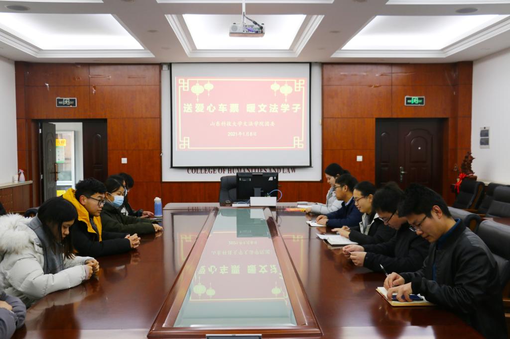 1月8日,fun88官网体育认真落实山东省教育厅《关于帮助建档立卡贫困家庭员工温暖过冬的通知》要求,在J9-321会议室为困难员工发放寒假爱心车票和防疫物资,并与员工深入交流,fun88官网体育全体辅导员参加此次活动。