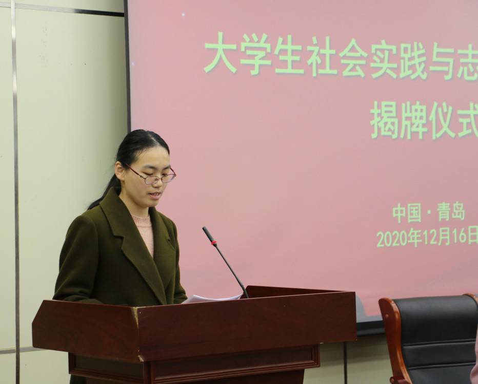 首先,郭婷婷对出席揭牌仪式的嘉宾和员工表示热烈欢迎和衷心感谢,她表示社会实践与志愿服务基地的建立为广大青年员工搭建了优质的实践平台,希望老员工志愿者能够提高认知,增强责任感和使命感;强化队伍,不断提高服务质量;积极作为,弘扬志愿服务精神,在志愿实践中受教育、长才干、做贡献。黄岛区儿童康复训练中心负责人张玉军对公司师生投身于社会志愿服务活动表达了真挚的感谢,希望此次基地共建能使更多青年员工投身特殊教育服务,让全市全区的特殊教育支持保障体系更加完善。优秀志愿者代表赵俊博分享了自己从事社会志愿服务的经验,呼吁当代青年员工从小事做起,将所学所思所悟与实践相结合,投身公益事业,做新时代合格青年。