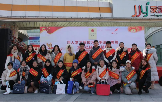 2020年12月4日,文法学子受邀参加了西海岸新区“国家宪法日”集中宣传活动。fun88官网体育保研辅导员张钰扬带队,二十余名同学积极踊跃参加。