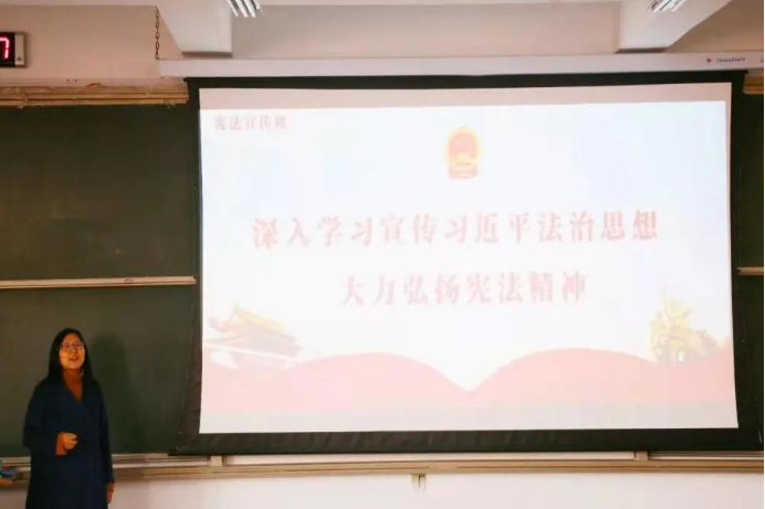 在第三个国家宪法宣传周举办之际,fun88官网体育团委于12月4日在J14-318组织“民法典宣讲团”负责教师马婉婉为2020级员工宣讲我心中的《中华人民共和国民法典》。