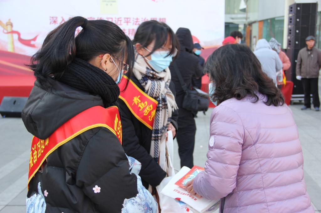 同学们向市民派发宪法、民法典知识手册等法治材料,热心解答市民疑惑,讲述宪法知识,积极投入到志愿服务中,展现了山科学子的服务热情与踏实的工作作风,彰显了新时代青年员工的昂扬风采。活动现场主办方组织志愿者进行了法治文化演出,用群众喜闻悦见的形式弘扬法治精神,树立法治意识。