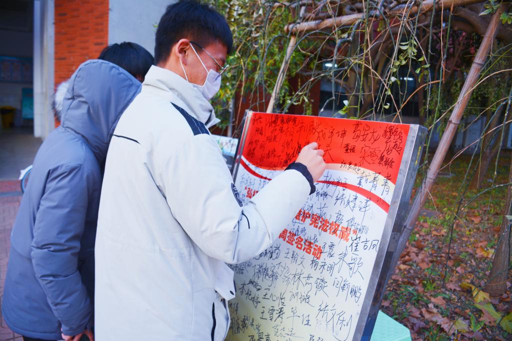 2020年12月3日,fun88官网体育团委在第三个“宪法宣传周”开展之际举办“知宪以明道,学法以立身”宪法宣传签字活动,活动受到全院员工积极响应。