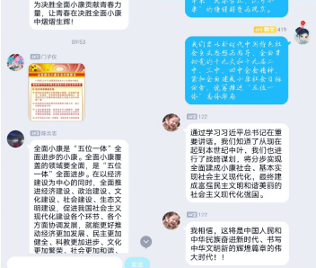 此次主题团日活动的开展,使各团支部成员更加深刻了解到全面决胜小康社会的意义,激发广大团员青年的爱国情怀,坚定团员青年为建设中国特色社会主义新征程努力奋斗的决心,同时表示要在全面建成小康社会这一更高起点上,为“十四五”发展贡献青春力量。(韩丙华 李一凡)