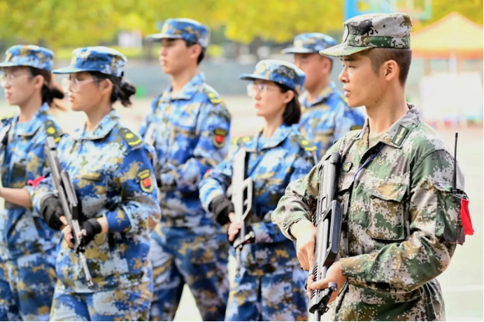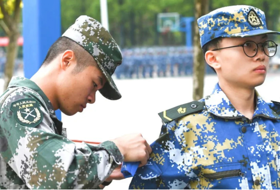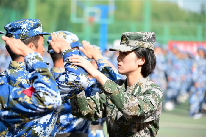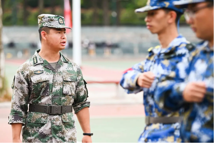 有这么一群人,纪律严明,精神昂扬。他们与新生们同甘共苦,他们使新煅的钢铁更加坚强。他们,是真正的战士!当我们看向他们时,仿佛屹立于此的不再只是一个矫健有力的青年,更是一座座巍峨的山峰,一支支撑起祖国大厦的国之脊梁。他们眼中涌动的火焰淬炼着两把利剑,仿佛目之所及处皆为沙场。这,才是我们真正的榜样。