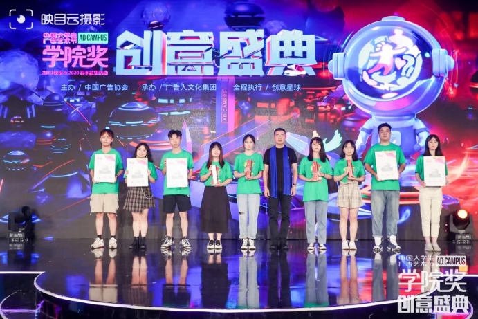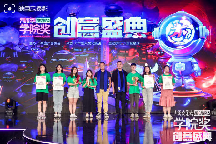 由徐丽老师指导的广告系刘诗薇、张浩、陈佳日的音频广告类作品《好听的声音一直在》获“云听命题”金奖;由毛雪婷老师指导的广告系文昱、李怡天、原诗淇、邱国鑫、吴雨杭的营销策划类作品《1%青年》获“利郎命题”银奖;边怡梦、张良子的平面广告类作品《纯净至美,纯净自信,纯净自然》获“伊贝诗命题”银奖。