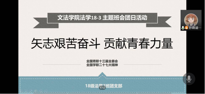 图为18级3班正在进行线上主题团日学习