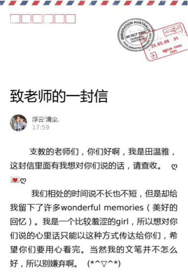图为孩子致老师们的一封信