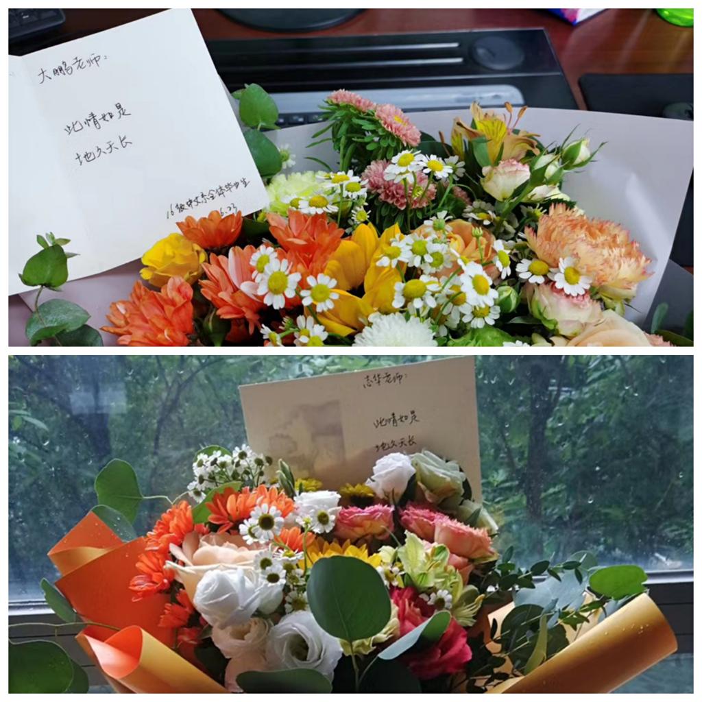中文系毕业生为老师送上鲜花(供图:吴鹏老师 王志华老师)