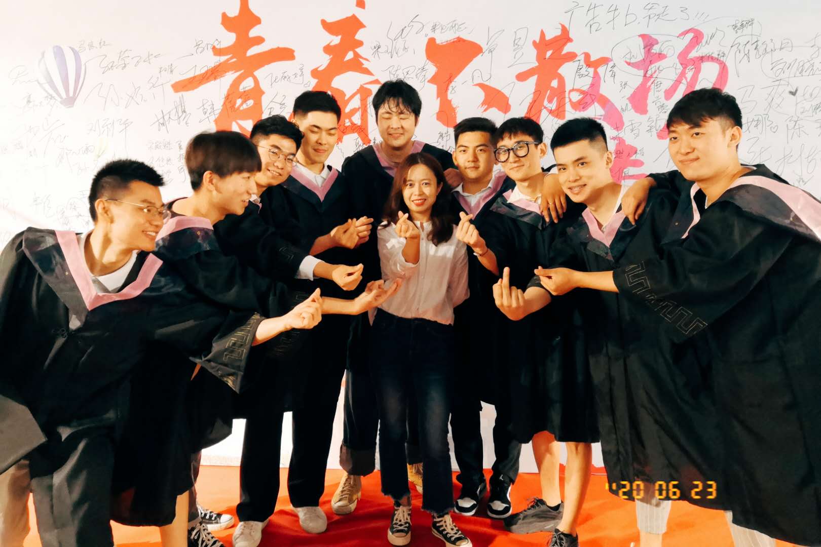 毕业生在签名墙前合影(供图:翟文强)