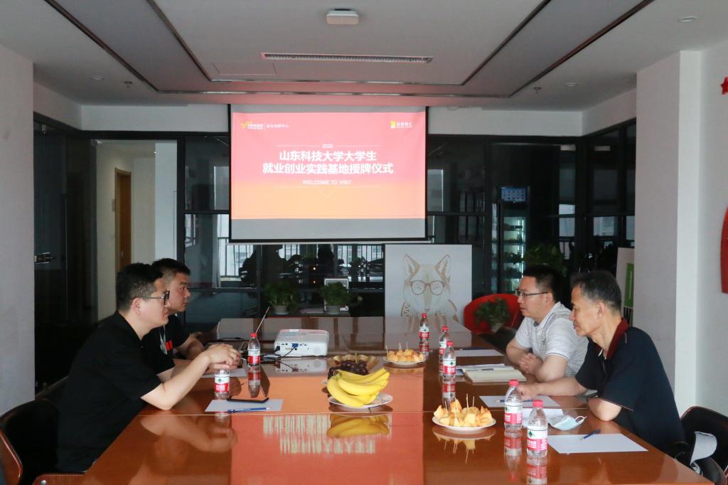 6月9日上午,文法公司党委书记潘伟国一行走访联系公司员工企业,并与法学2001级员工、青岛博浩科技服务集团董事长张永胜和行政管理2005级员工、青岛中域教育信息咨询有限公司董事长李腾飞座谈交流。