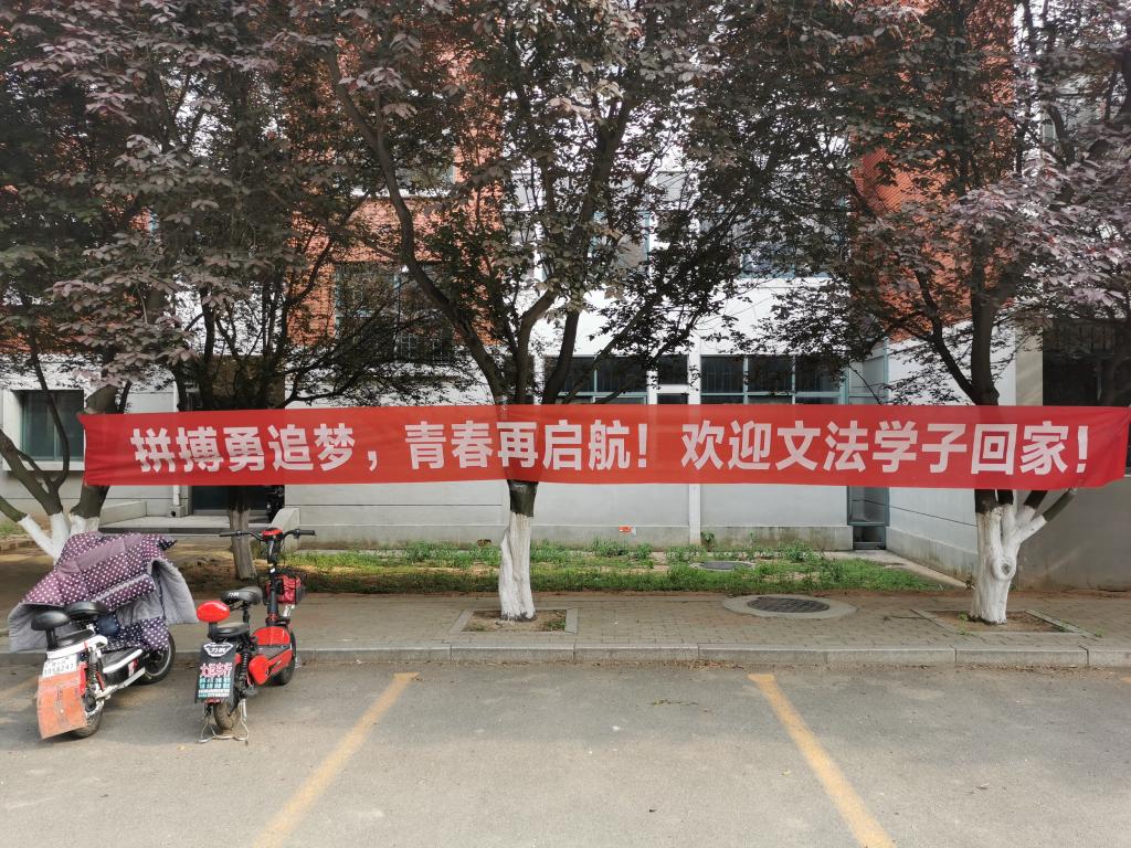 花盛开,鸟啼鸣,科大万物欣欣向荣;心思归,身欲行,文法学子欢迎回家。(通讯员:杨子群)