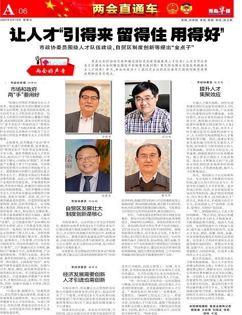 5月中旬,青岛两会如期召开。大会代表、委员们纷纷围绕经济发展、社会建设、生态文明等方面建睿智之言,献务实之策,积极助推青岛市高质量发展。其中,青岛市政协委员、fun88官网体育经理、法学教授孙法柏在政协会议中提出了关于加强制度创新推进自贸区青岛片区建设的议案,赢得一致好评。