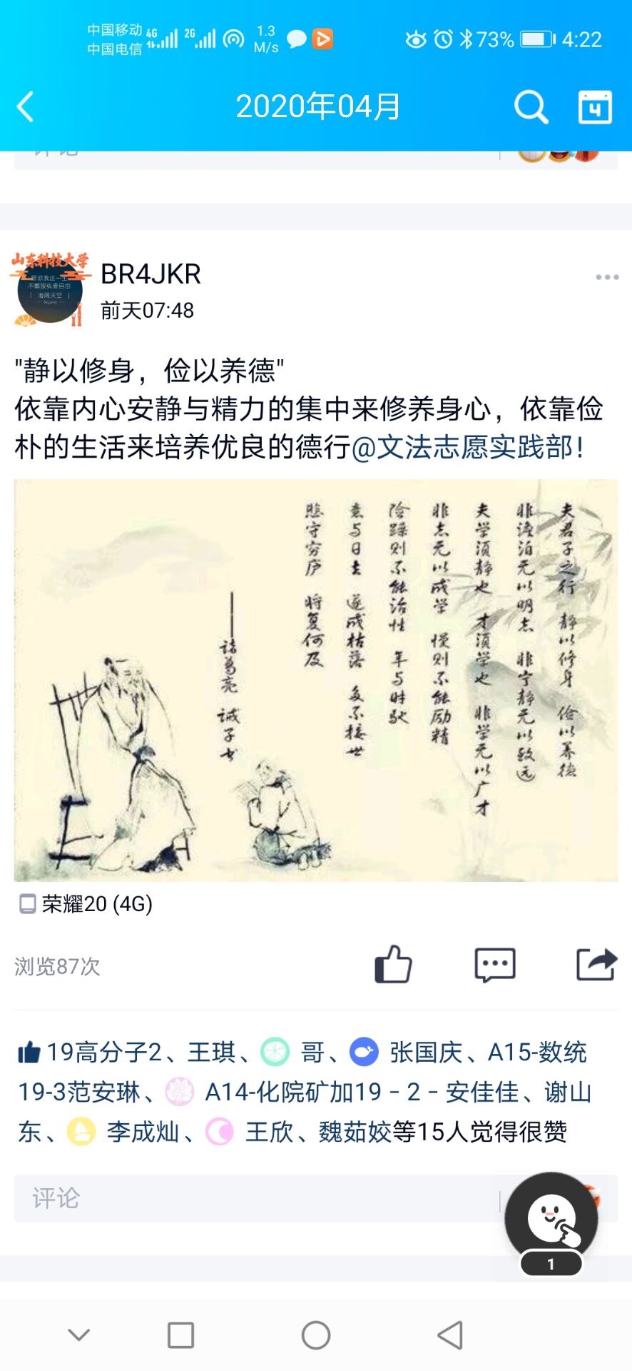 活动依托QQ和腾讯会议平台举行,参与方式采用文字及配图的方式,解说自己对家风家训的理解,同学们各具特色的解说,大大增强了此次活动的趣味性。员工会工作人员于25日晚在腾讯会议上举办家风家训小讲堂,以陆游、曾国藩等历史名人为例介绍家风家训的历史和发展历程,活动中还邀请同学们朗读梁启超的《莫问收获,但问耕耘》、张世发的《好,我一定来》等作品,让同学们在朗读中更真切的体会家风家训的重要性。