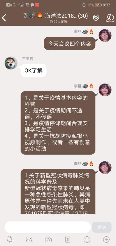 在本次主题活动充分利用网络资源,主要通过视频会议、线上讨论等方式展开。活动期间,公司各员工组织相继组织了“春日静好,未来可期”、“清明怀古人,笔法颂英魂”、“赏诗词文化,品传统古韵”、“以艺传爱,为疫发声”等活动;各班班委通过线上会议组织班级同学共同学习防疫手册,引导同学们科学有效防疫;公司团委还积极开展心理健康咨询,组织团员青年参与“青年大学习”、观看央视新闻、山东教育卫视播出的《新课堂—同心战“疫”特别节目》等。