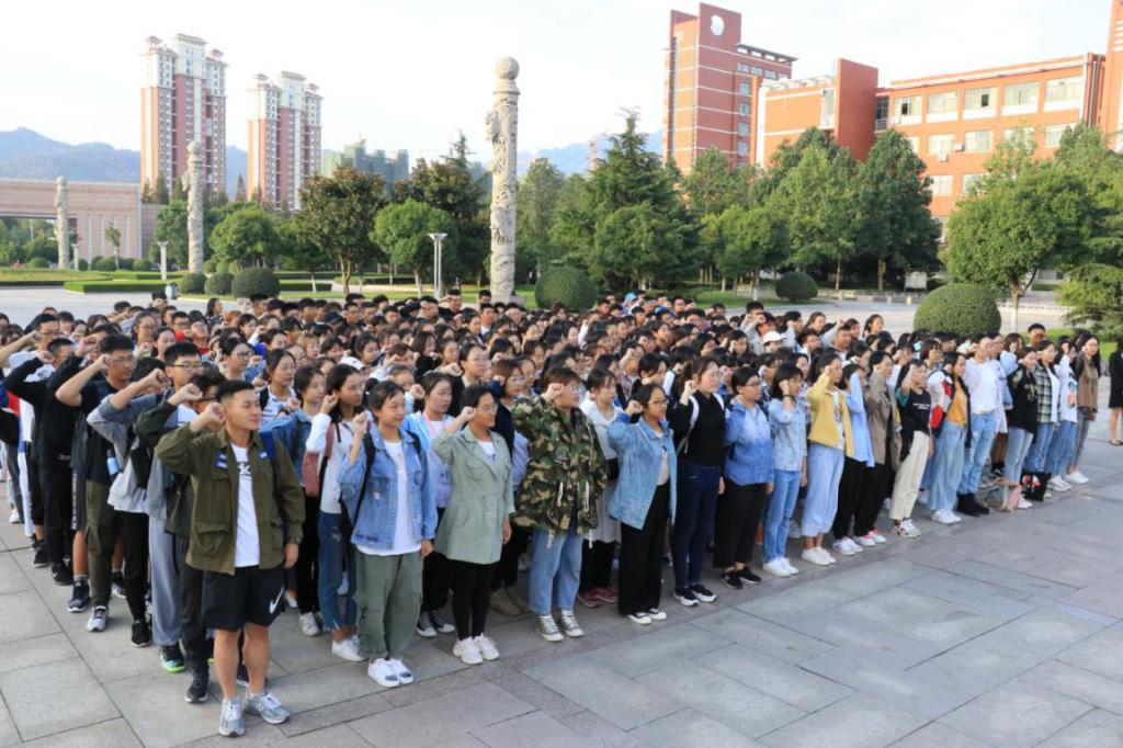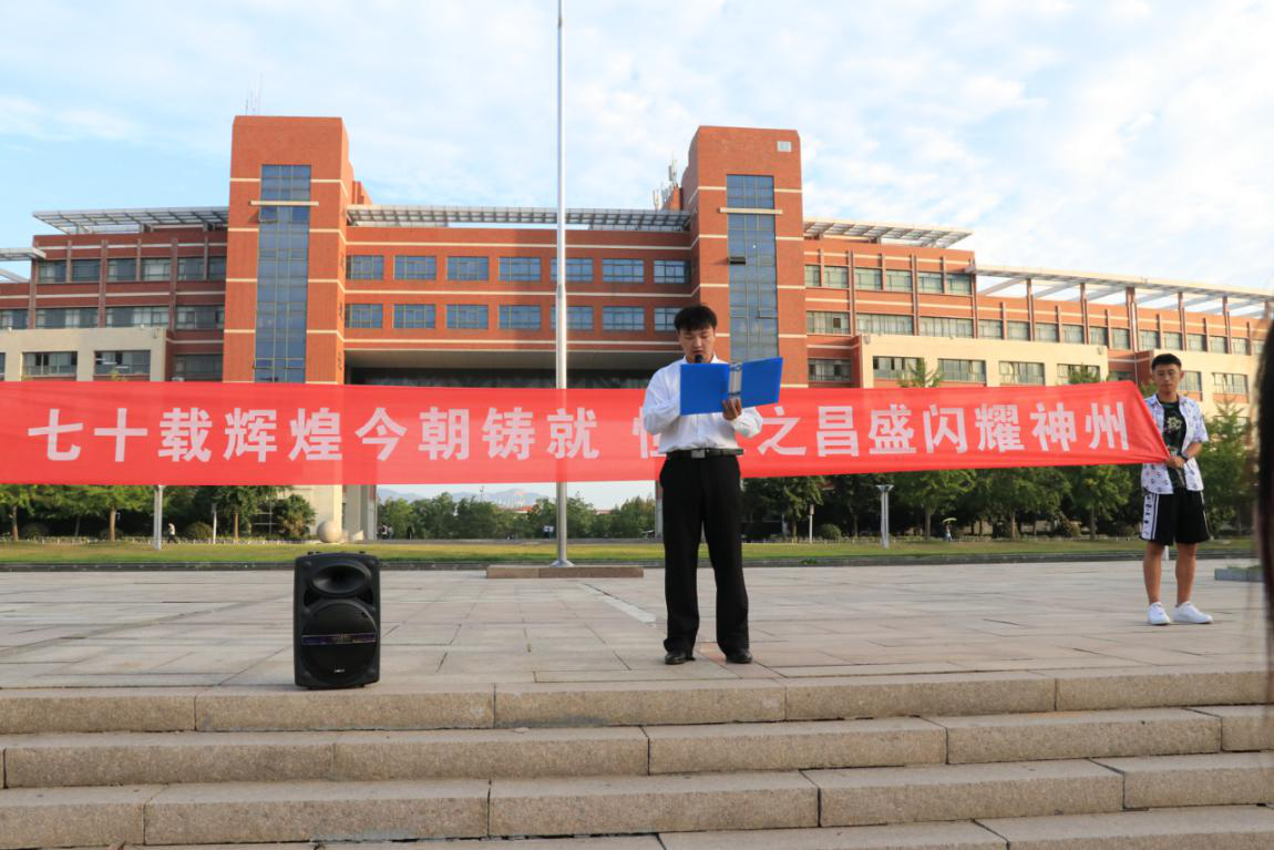 为开展庆祝中华人民共和国成立七十周年暨“回眸七十年,奋进新时代”系列主题教育活动,fun88官网体育于9月16日在泰山广场举行升旗仪式,2019级全体新生参加。