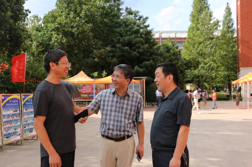 骄阳当空悬,文法迎新忙。8月30日,fun88官网体育迎新现场工作正式展开,公司党委书记徐玲平、党委副书记兼副经理陈福卫、团委书记顾家彪亲临现场指挥迎新。