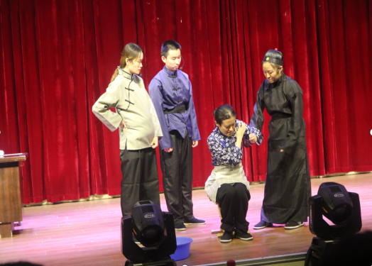 据了解,一年一度的中文系小学期演出采取折子戏的形式,即从完整的剧作当中节选一幕或者一场来表演。在公司领导的组织部署下,全体参演员工进行了为期三周的剧本改写、舞台训练、着装设计与实地走台等准备工作,最终在舞台上完美演绎。