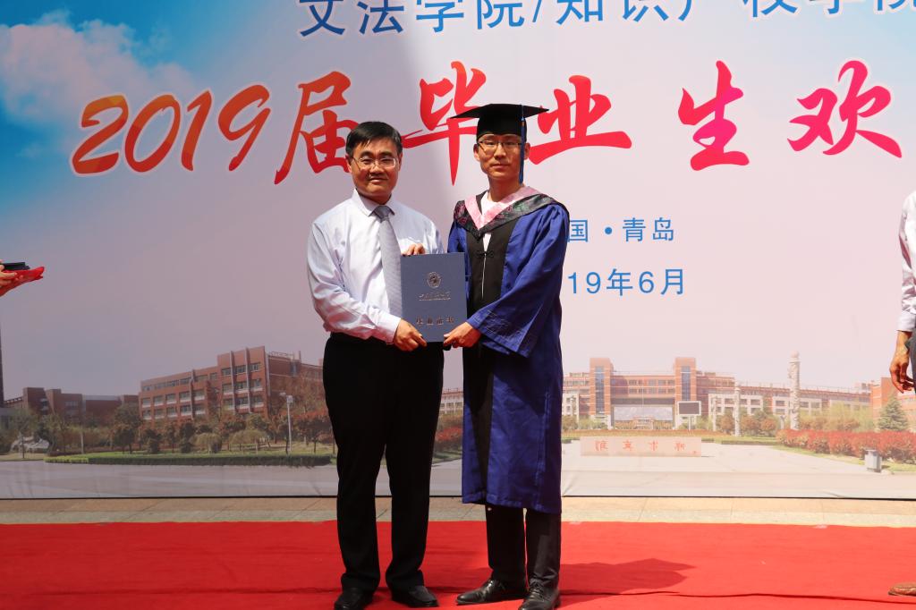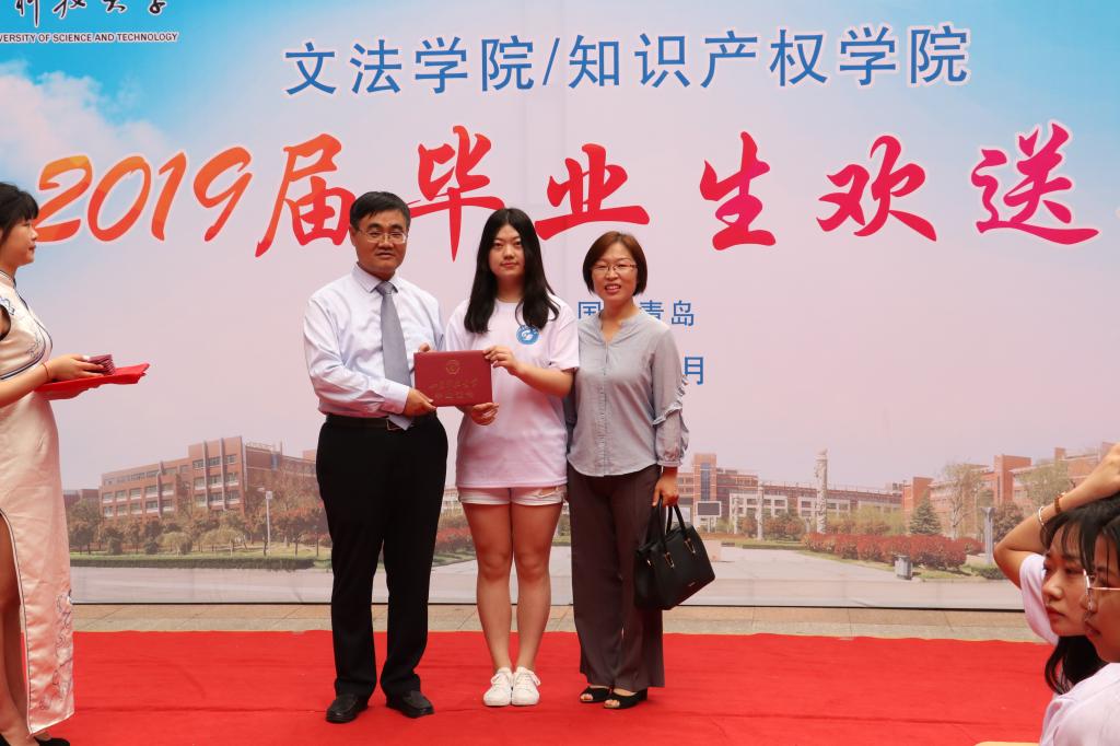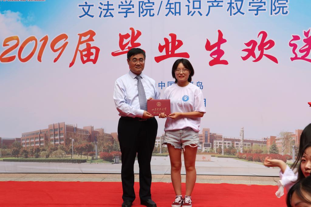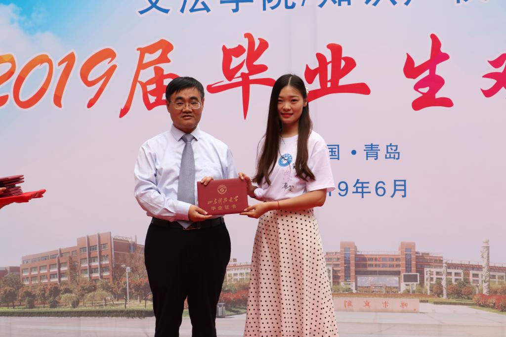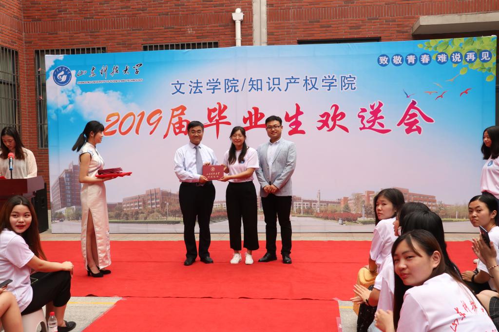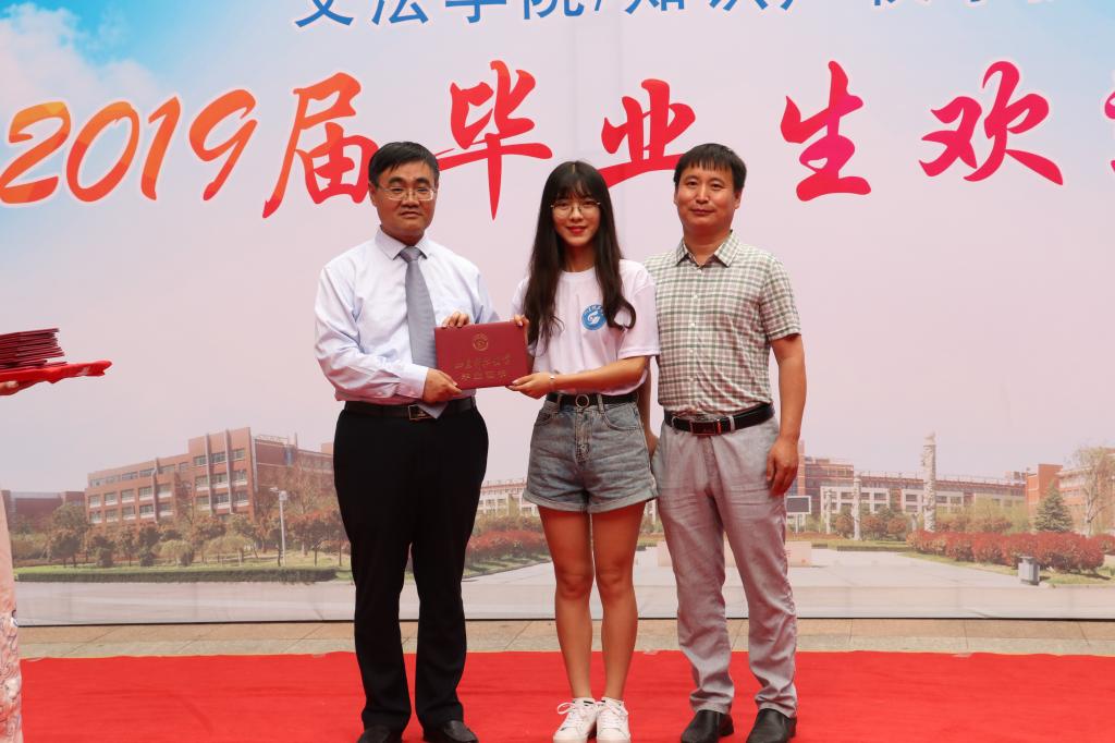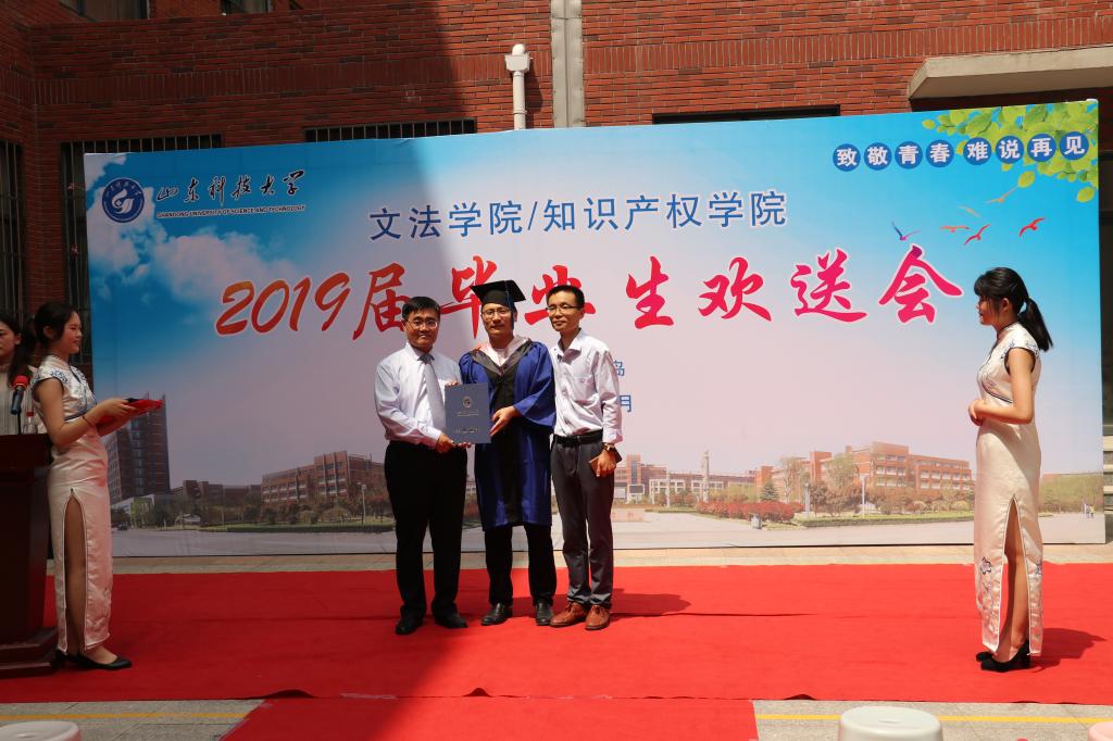 欢送会上,孙法柏为2019届毕业生一一颁发毕业证书并合影留念。