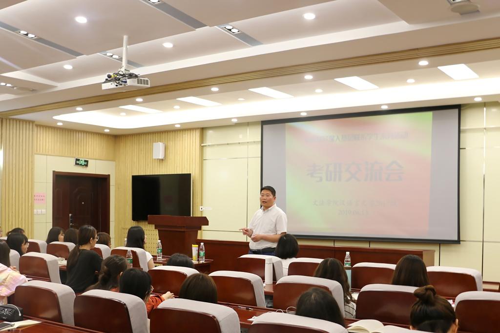 为进一步落实领导干部深入基层联系员工工作,也为给有考研意向的同学加油鼓劲,加强员工对考研知识的了解,近日,fun88官网体育在J9-135举行了针对17级汉语言文学专业的考研交流活动。交流会有幸邀请到硕士生导师、fun88官网体育副经理高升,以及八位15级汉语言文学专业考研成功的同学共同为低年级同学答疑解惑。会议由汉语言文学17级班主任王志华主持。