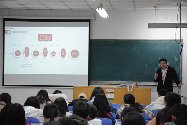 本次宣讲分公职考试类型、答疑解惑两部分。张斌首先向大家讲明各类公职类考试一般包括笔试、面试两部分。然后,他着重向大家分享了面试时的注意事项和应对技巧。他讲到,面试时要有灵敏的应变和洞察能力,要保持沉着冷静的心态,举止要大方稳重。在最后问答环节,同学们积极提问,张斌老师也认真耐心地予以答复,双方互动融洽,整场会议在轻松愉悦的氛围中结束。