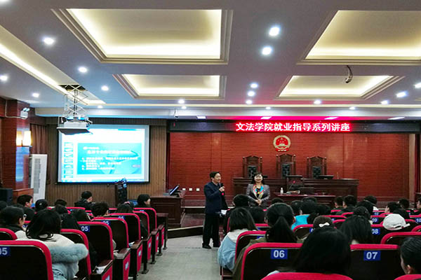 为扩充法学毕业生的就业知识、提升就业能力,引导他们更好踏入社会,近日,fun88官网体育于模拟法庭举办法学系毕业生就业指导讲座。本次讲座邀请到了盈科律师事务所主任王明芝担任主讲人,法学系党支部书记张钦润老师主持此次讲座。
