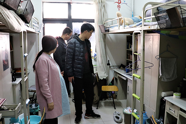 检查工作由辅导员老师带队,分男、女生宿舍两队进行。各位专兼职辅导员和自律会干事深入到各个员工宿舍,从违禁电器、明火类物品、易燃物品堆放和卫生情况等方面着手进行重点检查。对于检查过程中出现的人走不断电,阳台易燃物品堆放等问题,辅导员老师及时提出指正和整改意见,并要求自律会成员做好记录和后期的监督监察工作。同时,对于卫生较差的宿舍,辅导员老师也告诫大家要注重宿舍环境卫生,经常开窗通风和消毒,预防春季传染病的发生。