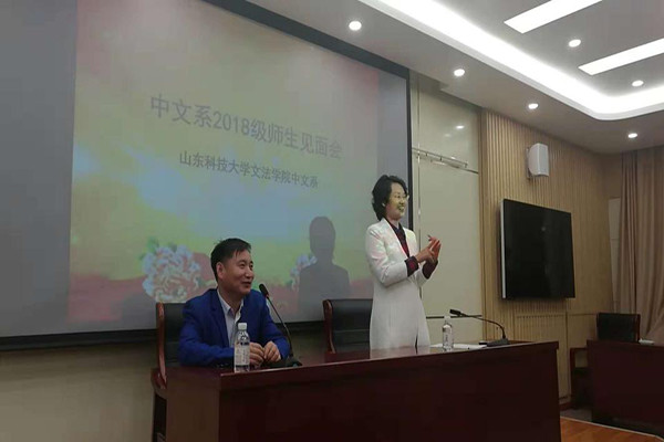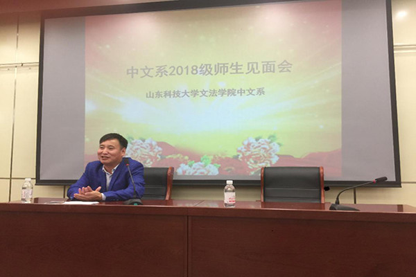 10月11日晚7点,中文系2018级本科生师生见面会在J9-135会议室举行,中文系全体教师、18级辅导员杨子群及毕业生代表苗得雨参加了本次见面会,与18级中文系全体新生进行了深入交流。