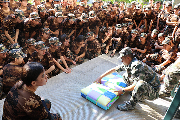 为引导新生养成良好的生活习惯,营造整洁舒适的生活环境,9月11日下午,在教官的带领下,2018级新生进行了内务整理。