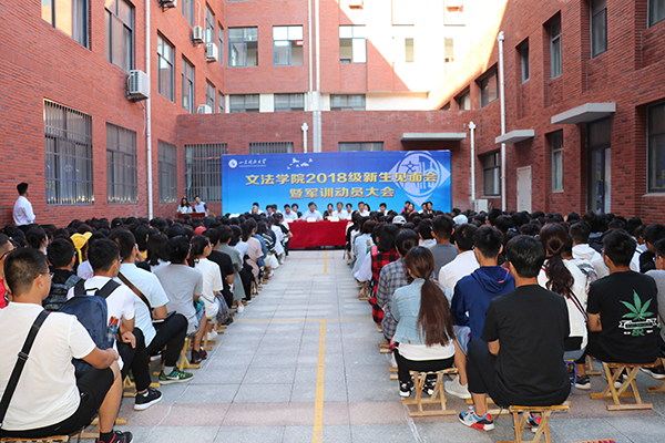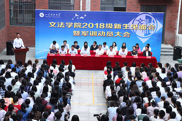 9月10日上午,fun88官网体育于J9公司楼小广场召开2018级新生见面会暨军训动员大会。公司党委书记徐玲平、经理孙法柏、党委副书记兼副经理陈福卫、副经理高升及党政办主任、团委书记各系主任、2018级各班班主任、全体专兼职辅导员和2018级各班辅导员助理出席了本次会议,2018级全体本科新生参加。会议由冯艳艳主持。