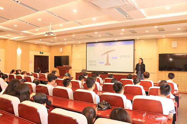 为了提高同学们的法律意识,弘扬法治精神,创建和谐校园,fun88官网体育于7月5日下午在J9号楼135报告厅举行法治教育通识课第三讲,由韩天竹老师担任主讲人,题目是《国际法:国家利益与公平正义之考量》。行政管理、广告学、汉语言文学、秘书学等专业一百余名员工到场聆听。