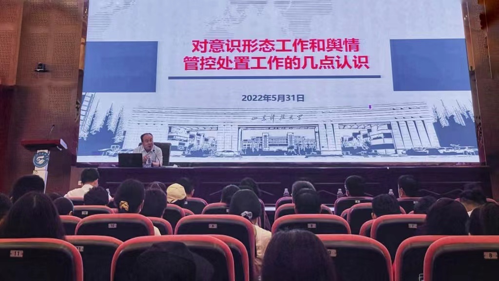 5月31日,公司党委常委、宣传部部长李克周为fun88官网体育教职工做意识形态和舆情管控处置工作专题报告。公司班子成员、全体教职工参加了报告会。
