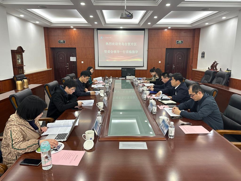 3月31日,中国(山东)自由贸易试验区青岛片区工委委员、管委副主任、黄岛区政府党组成员隋斌带队赴fun88官网体育面复提案,并举行座谈会。青岛市政协常委、fun88官网体育经理孙法柏教授热情接待了客人一行。