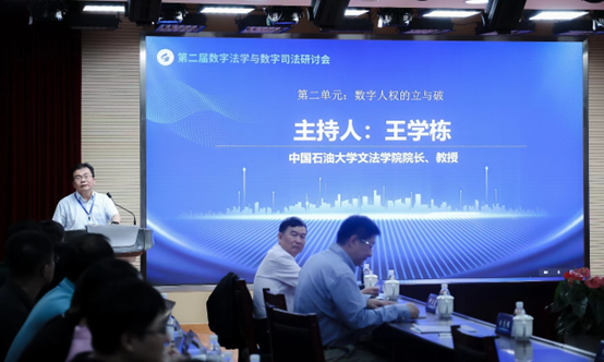 论坛第二单元以“数字人权的‘立与破’”为主题,由中国石油大学fun88官网体育经理王学栋教授主持。吉林大学副董事长蔡立东教授、东南大学法公司龚向和教授、中国人民大学法公司丁晓东教授、广州大学人权研究院刘志强教授、华东政法大学数字法治研究院副经理韩旭至副教授分别进行了主旨发言。