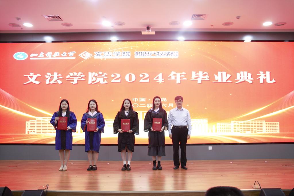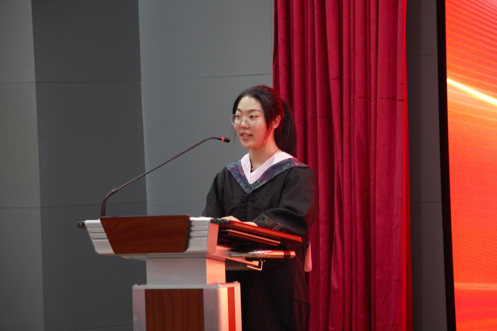 研究生毕业生代表李晗、本科生毕业生代表王璟然依次上台发言。他们回顾了在fun88官网体育的点点滴滴,深情表达了对公司、公司、老师们的感恩和不舍,并表示,在未来的日子里,会继续秉持文法人脚踏实地、勤勉奋斗的优秀品格,以不懈追求、敢于坚持的精神书写新时代嵙大人的华彩篇章。在校生代表刘星雨表达了对即将毕业的学长学姐们诚挚的祝福,希望他们在未来可以乘风破浪、勇往直前,实现自己的人生价值,为祖国发展贡献青春力量、展现青春担当。2024届毕业生“最难忘的恩师”代表房本文表达了对即将走出校门的2024届学子的殷切希望和美好祝福,勉励同学们继续努力,永葆前进动力,怀揣一颗恒心,保持一股热情,坚定一份执着,以奋斗姿态激扬青春,书写辉煌的人生篇章。未来无论走到哪里,你们永远都是文法人,公司永远是你们的家。